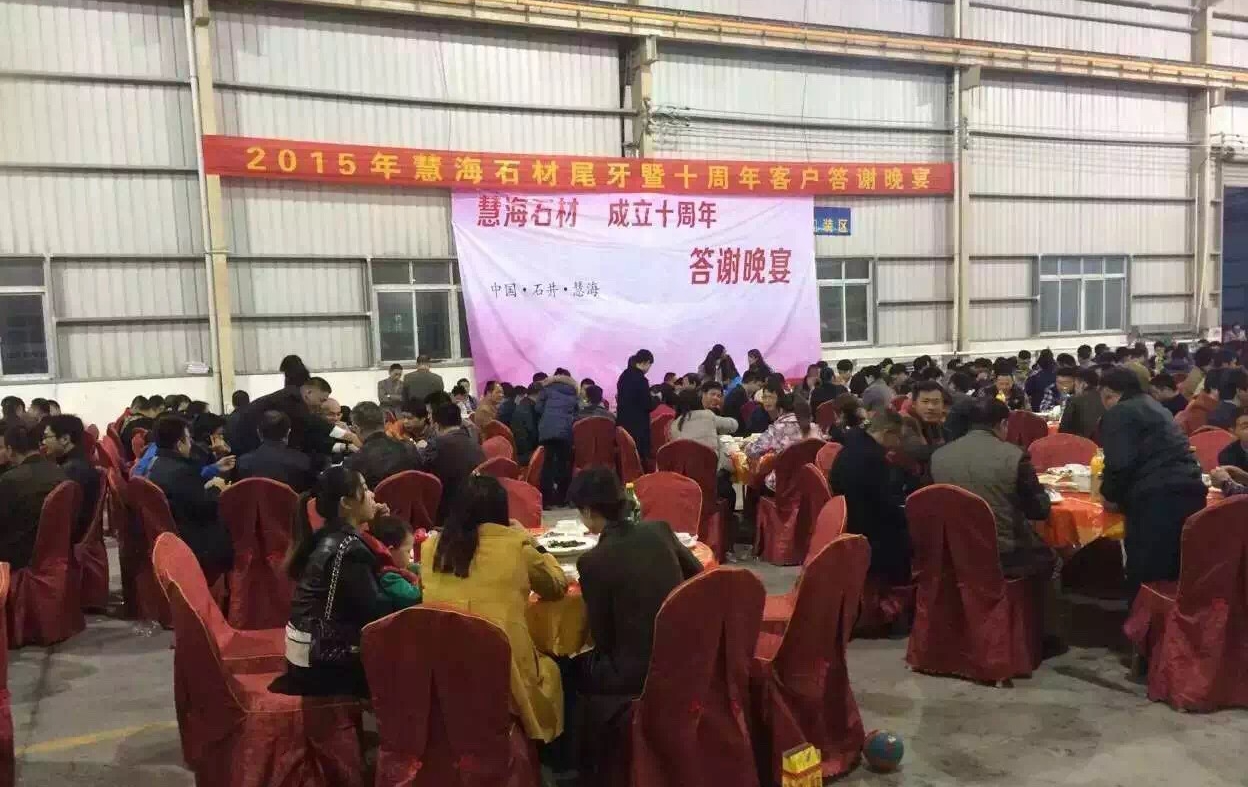 十年诚挚,不忘初心感谢各位百忙之中莅临慧海石材 2015年尾牙暨慧海石材十周年客户答谢宴!各位朋友太给力了坐了满满40桌~招待不周请多担待祝大家2016发发发...