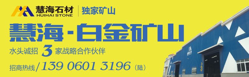 对于石材,敢于梦想,勇于挑战的人不怕没有机会。你没有平台,慧海为你构建,你没有资源,慧海为你打造。以真诚构建平台,用实力打造资源,2016年,慧海石材独家矿山——白金世纪、黄金世纪,水头地区诚招3家战略合作伙伴。 资源不等人,抢战要趁早,合作创未来!